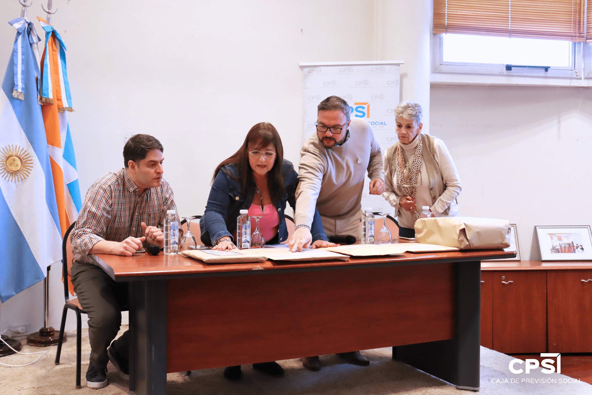 El acto se desarrolló en el Salón de Usos Múltiples de la Caja de Previsión Social, en el marco del convenio de colaboración y asistencia profesional y técnica con el Ministerio de Obras y Servicios Públicos.
