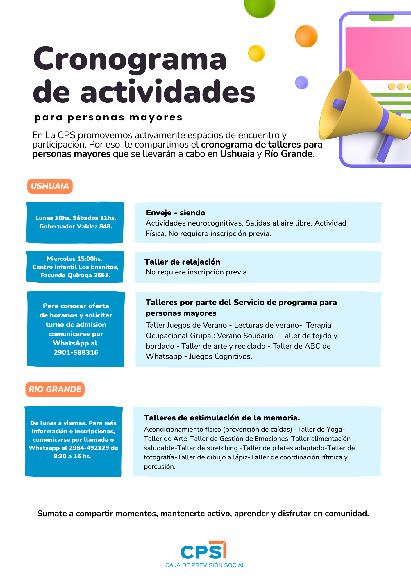 • CRONOGRAMA DE ACTIVIDADES PARA PERSONAS MAYORES 2026